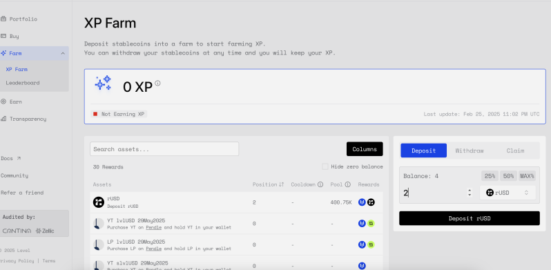 💡 Tip: By depositing rUSD on Level, you simultaneously qualify for both Reservoir and Level Protocol airdrop farming rewards.